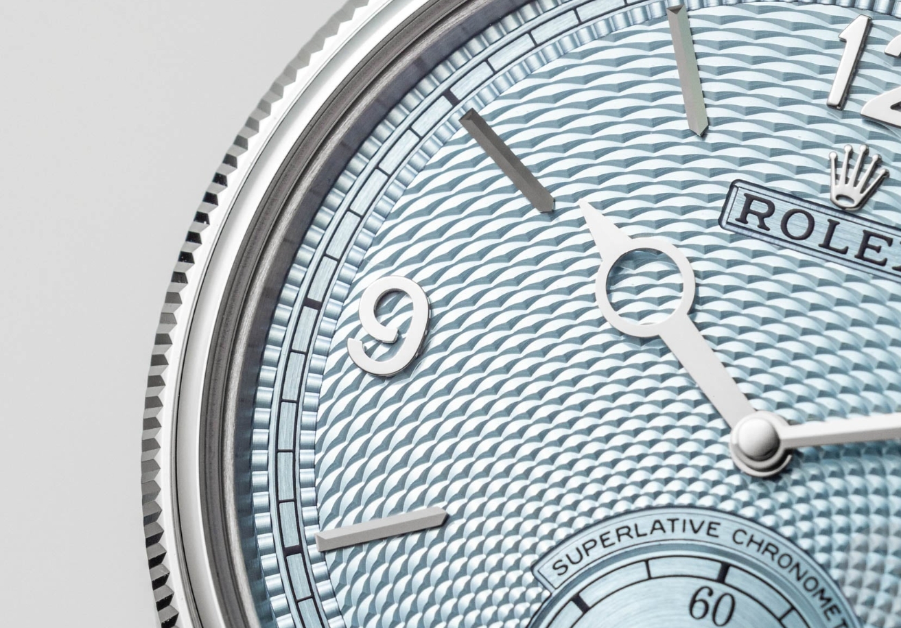 I guess that 1908 owners have more than just that dressy, chic Rolex, and it wasn’t their first. But if you want to wear a Rolex but also desire to be original, the 1908 could be a good choice. It certainly is a watch that ticks all the dress-watch boxes. The 39mm case is just 9.5mm thick, and the dials show nice little details. The fake Rolex watches for sale have delicately recessed small seconds sub-dials, and the platinum reference 52506 has a rice-grain motif on the engine-turned dial as a dynamic bonus. Two more subtle touches are the decoration flanking the minute track — a so-called filet sauté with a crimped pattern — and the elegant hour and minute hands.